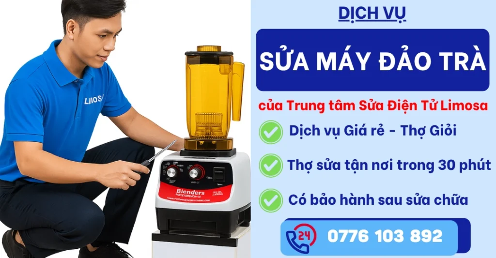 Thiết bị pha chế trong quán cần vận hành ổn định để bảo đảm quy trình phục vụ trơn tru. Khi máy gặp trục trặc và bạn cần sửa máy đảo trà, hãy liên hệ ngay HOTLINE 0776 103 892 để được hỗ trợ nhanh nhất. Trung Tâm Sửa Điện Tử Limosa là đơn vị chuyên kiểm tra và xử lý các vấn đề kỹ thuật của máy đảo trà, kể cả những lỗi phức tạp liên quan đến motor, mạch điều khiển hoặc cơ cấu xoay giúp máy hoạt động ổn định trở lại sau khi hoàn tất.