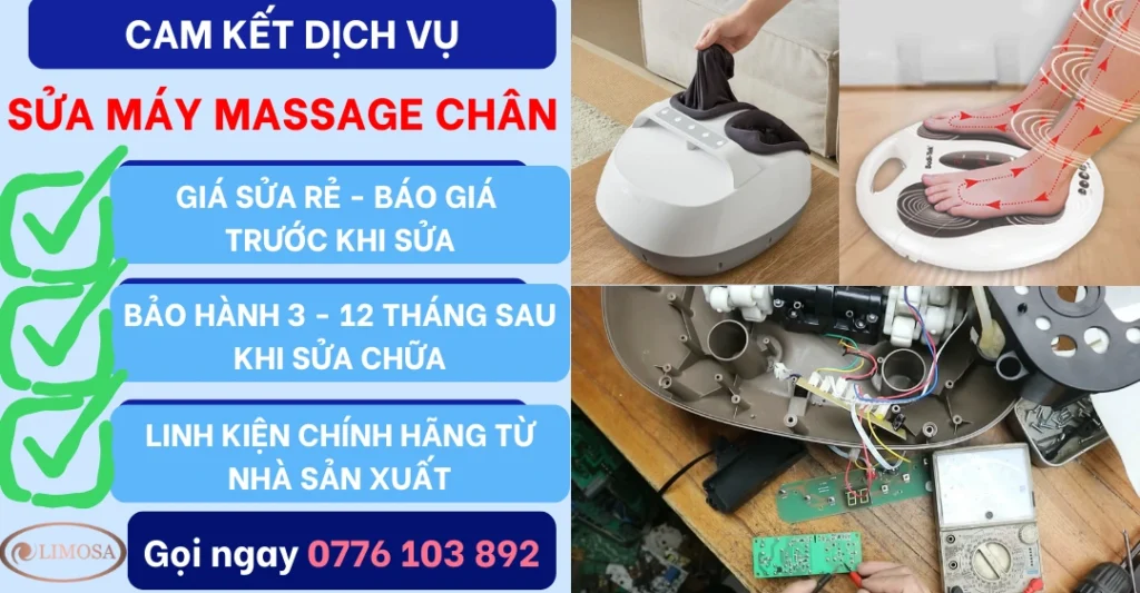 Thông tin liên hệ: Khi gặp các sự cố trên, quý khách vui lòng liên hệ trực tiếp HOTLINE 0776 103 892. Kỹ thuật viên của Sửa Điện Tử Limosa sẽ có mặt tại nhà trong vòng 15 – 30 phút để kiểm tra, tư vấn sửa máy massage chân với giải pháp tối ưu với linh kiện thay thế chuẩn hãng, đảm bảo độ bền tuyệt đối cho thiết bị.